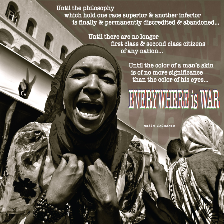 Enhanced Quotation project consisting of found images combining music lyrics. The chosen phrase is part of Haile Selassie's speech given to the United Nations in the early 60's, and is still relevant today. Several music artists such as Bob Marley, Sinead O'Connor, & Bobby Sullivan from Soul Side have borrowed parts of his iconic speech to relay their message.