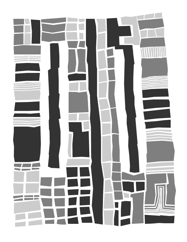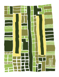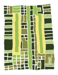 The Quilt Project worked to understand the basics of a page layout program, develop design skills, and matching colors to the image. Starting with line work, moving to greyscale, then adding color.